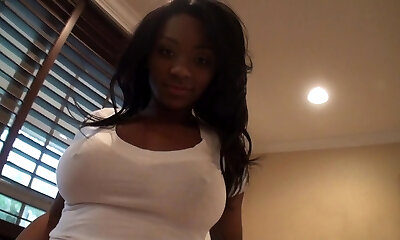 Chubby busty black cutie with big caboose sucks her hubby's dick