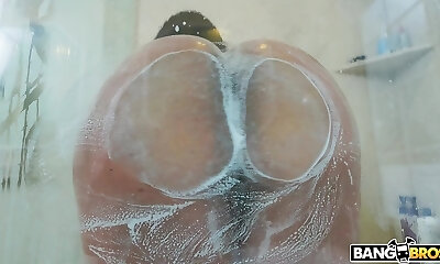 Stepmom taking bath in bathroom and i saw how she bath her big boobs and her pussy