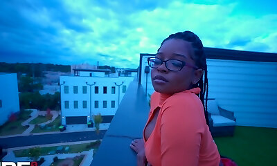 Huge-chested natural ebony gal with glasses get squirt