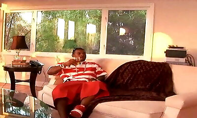 Hot dark-hued BBW Diuna with sexy glasses fucks her mouth-watering booty
