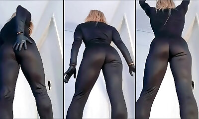 Ass in Dark-hued Catsuit