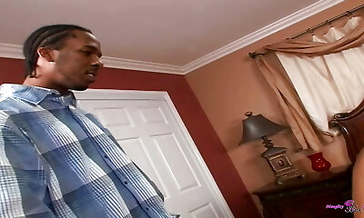 Horny dark-hued stud with a huge bone bangs sexy white babe hard after getting a BJ
