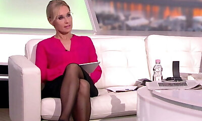 animateur de télévision aux longues jambes en collants noirs et talons aiguilles dix