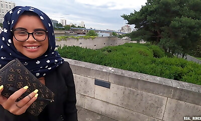 A pretty Hijab Arab chick gets torn up in anal and in public by Two blacks to go to Marbella!