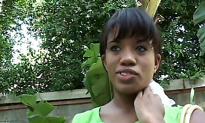 Attractive black damsel in stockings in the missionary adventure
