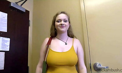 微小的金发女郎Kenzie里夫斯是刺穿上巨大的黑公鸡