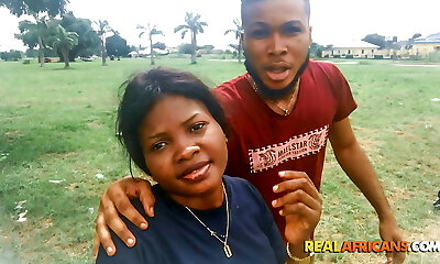 Adaobi抓住了由区域女孩撒尿在一个农田和性交