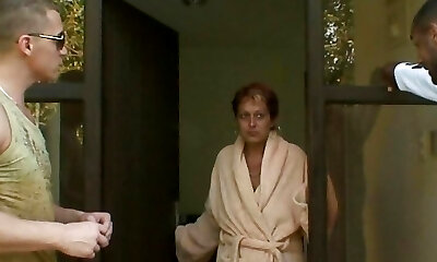 老剃光奶奶戳通过大的黑色和白色的公鸡