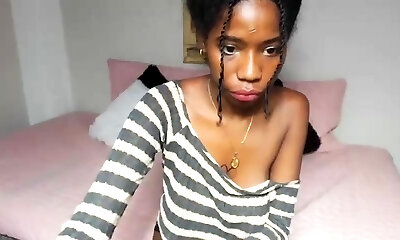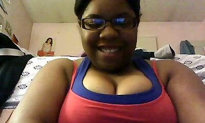 巨大的乌木美与沉重的胸罩stuffers和矮胖胖的臀部在凸轮